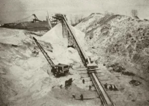 Concern about the dune’s disappearance emerged surprisingly early. By 1894, observers noted that the once-massive landmark had already been reduced to roughly sixty feet in height. Still, demand for silica sand continued to grow. Mining operations expanded year after year until, by about 1920, the Hoosier Slide had been entirely leveled. Estimates suggest that as much as 13.5 million tons of sand were removed, though laborers from the site later said that number was closer to 9.5 million tons, citing the original estimation was based purely on average train cars leaving the site, multiplied by days of operation. Regardless, it was enough to erase the dune completely.