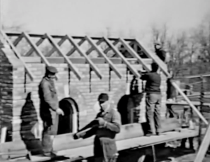 Workers add the roof to a Washington Park building/storage shed. (Michigan City Parks Dept. Archives)